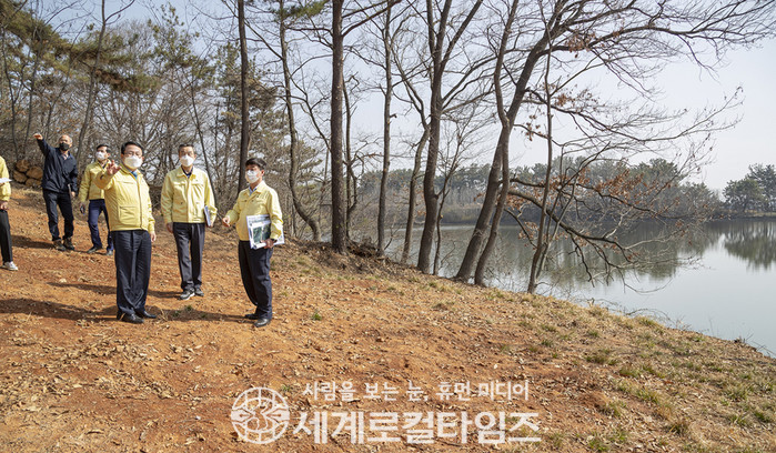 정헌율 시장은 지난 18일 신흥공원을 방문해 중앙체육공원을 비롯한 공원 산책로 등을 점검하고 신흥저수지 주변 산책로와 휴게공간 조성 현황을 살폈다.