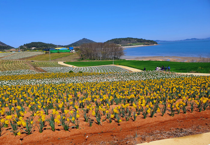지금 선도에는 7.9㏊의 면적에 27개 품종 100여 종이 넘는 다양한 수선화가 심어져 있다.