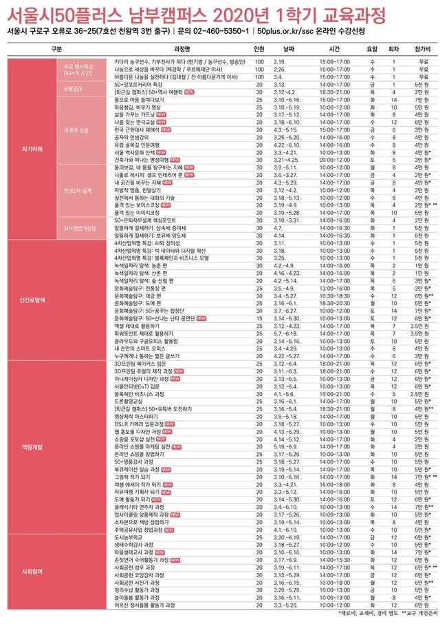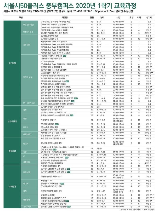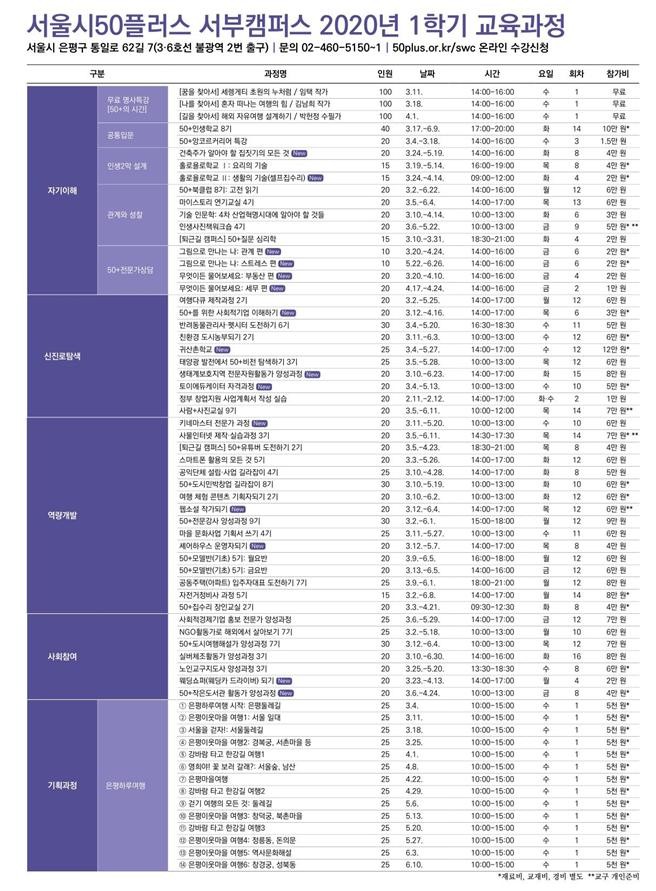 다음달 3일 오전 9시부터 50+ 웹사이트에서 강좌별로 선착순 접수한다.