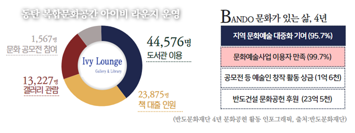 반도건설에 따르면 올해로 설립 5주년을 맞이한 반도문화재단은 지난 4년간 동탄2신도시 ‘동탄역 반도유보라 아이비파크8.0’ 단지내 위치한 복합문화공간 아이비라운지를 통해 도서관·갤러리 등을 중심으로 다양한 온오프라인 문화사업을 진행하며 연평균 1만5,000명이 찾는 문화공간으로 자리매김했다.