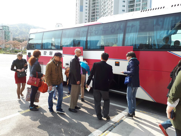 [세계로컬신문 이평래 기자] 동해공영버스터미널에서 DBS크루즈훼리를 이용해 동해항으로 입항한 후 시외버스터미널을 이용하는 러시아 관광객에게 통역서비스를 실시해 호응을 얻고 있다.