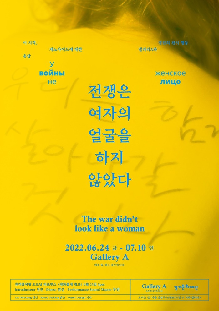 또한 “우크라이나 전쟁은 하나의 사건이지만 하나의 사건이 아니기도 하다. 차곡차곡 쌓이는 비극, 어디에나 있는 비극, 나는 폭력이 만드는 이 비극들에 응답하기 위해 지금 여기에 작업자로서 있어야 했다”면서 “그래서 이번 전시는 비극 속에 있는 모든 약자에게, 내가 할 수 있는 모든 것으로 써서 보내는 연서”라고 전시의 의미를 밝혔다.