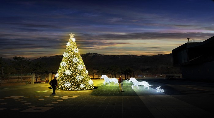 크리스마스 전후 박물관 앞마당에 조명조형물 설치 및 포토존 조성