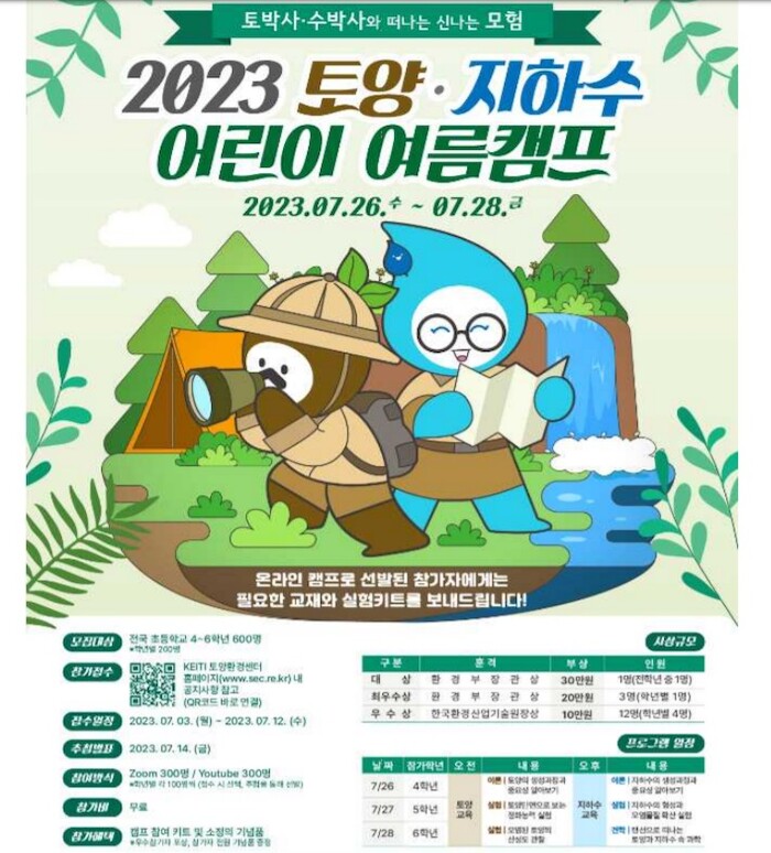 [세계로컬타임즈 이효진 기자] 환경부와 한국환경산업기술원은 ‘토양·지하수 어린이 여름캠프’ 참가자를 모집한다.