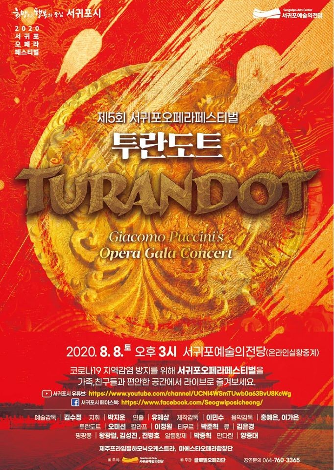 [세계로컬타임즈 김광훈 기자] 제주 서귀포예술의전당은 오페라 ‘투란도트 갈라 콘서트’를 오는 무관중 온라인 공연으로 개최한다.