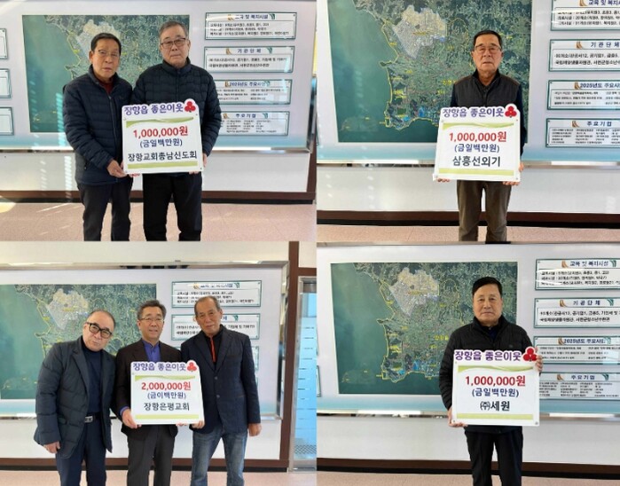 이와 함께 한국기독교장로회 장항교회 임천수 목사 시무 총남신도회(회장 유충일)에서 30여명의 회원들이 회비를 모아 100만원을 기탁했으며, 삼흥선외기(대표 배장열)에서도 100만원을 후원해 지역사회에 온정을 전했다.