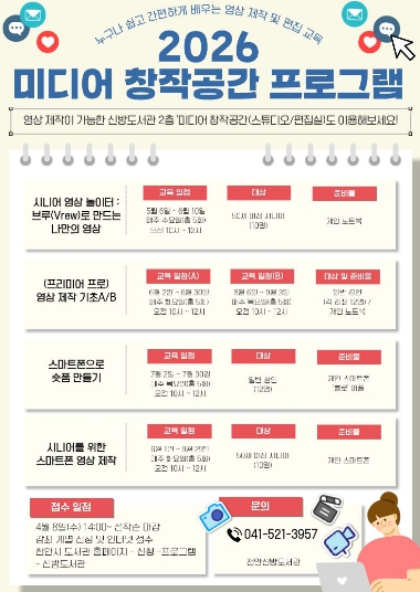 이재순 신방도서관장은 “시민들이 미디어 창작을 보다 쉽게 접하고, 일상에서 활용할 수 있도록 프로그램을 기획했다”며 “이번 기회를 통해 미디어 창작공간이 활발히 이용되길 기대한다”고 말했다.
