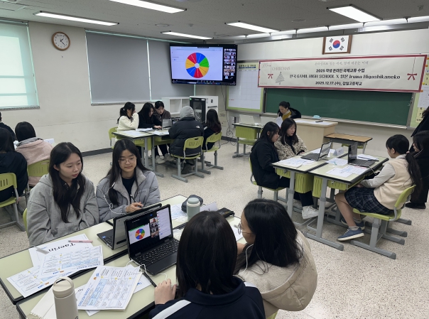 이날 교류에서 세 나라 학생들은 학생 제작 퀴즈와 학교 생활, 각국의 문화 등을 소개하며 자연스럽게 소통했으며, 소그룹 대화를 통해 상호 이해를 심화했다. 특히 영어를 활용한 실시간 대화를 통해 서로의 일상과 교육 환경을 비교·공유하며 의사소통 능력과 문화 감수성을 키우는 계기가 됐다.