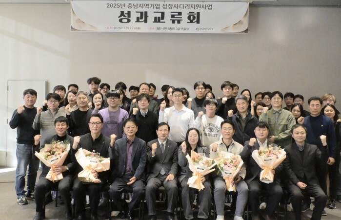 충남TP 서규석 원장은 인사말에서 “2025년 성장사다리 지원사업은 단순한 기업 지원을 넘어 매출·고용·투자·수출로 이어지는 실질적인 성과 창출에 집중했다”며 “앞으로도 기업 성장 단계별 맞춤 지원과 함께 기업 간 성과 공유와 협업이 이어지는 지역 산업 생태계 조성에 최선을 다하겠다”고 말했다.