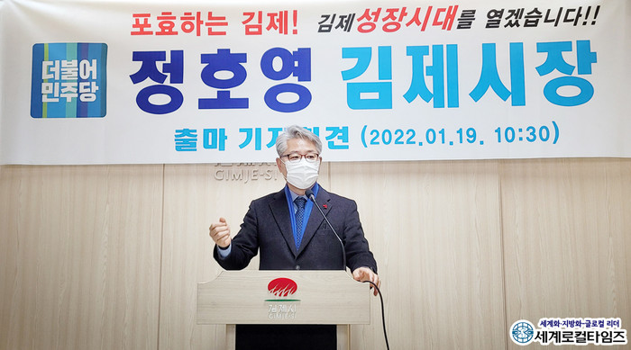 정호영 전 부의장은 19일 오전 김제시청 브리핑룸에서 “코로나19로 무너져버린 민생경제를 회복하고 지역과 공직사회에 잔존하는 불공평·양극화·불공정을 해소하겠다”며 김제시장 출마 기자회견을 가졌다.