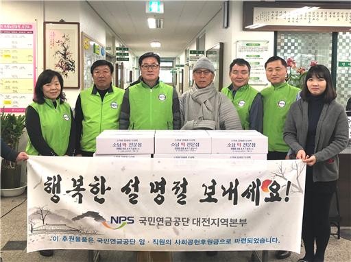 [세계로컬신문 오영균 기자] 국민연금공단 대전지역본부가 지난 12일 대전 서구 노인복지관을 찾아 설맞이 떡국 떡 나눔 봉사활동을 가졌다.