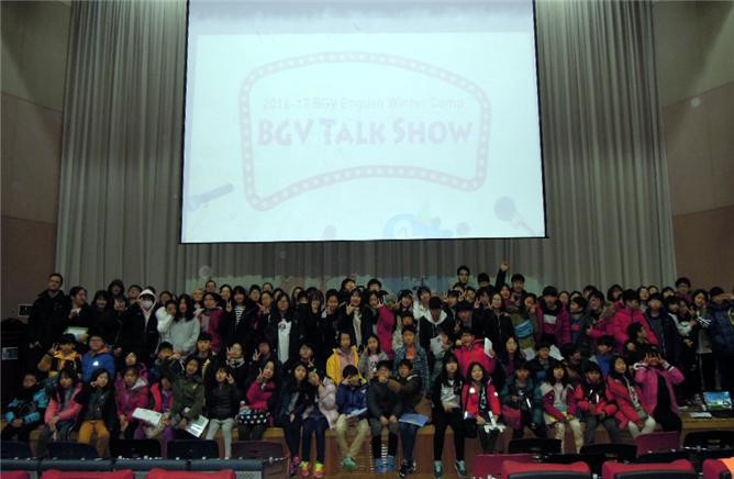 특히 이번 겨울방학 캠프는 기본적인 영어회화 수업 외에 영어구사능력 향상을 위한 Listening, Reading, Speaking, Writing 중심의 전공수업과 ‘BGV talk show'라는 캠프 주제로 참가자들이 팀별로 직접 영어 토크쇼를 제작했다.
