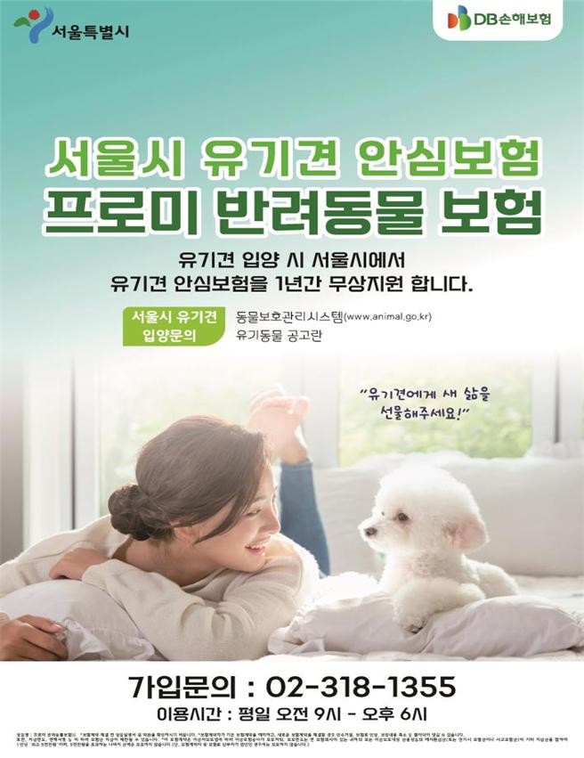 올해 유기견을 입양하고 동물등록을 완료한 시민은 올해에 입양기관이나 보험사를 통해 가입할 수 있으며, 보험 가입 시 구강질환까지 보험으로 보장받을 수 있고 반려견 간식을 지원받을 수 있다.