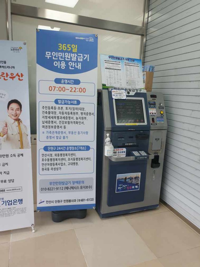 [세계로컬타임즈 김상우 기자] 안산시 단원구는 코로나19 예방과 함께 원활한 민원처리를 위해 무인민원발급기 활용을 적극 홍보하고 있다고 31일 밝혔다.