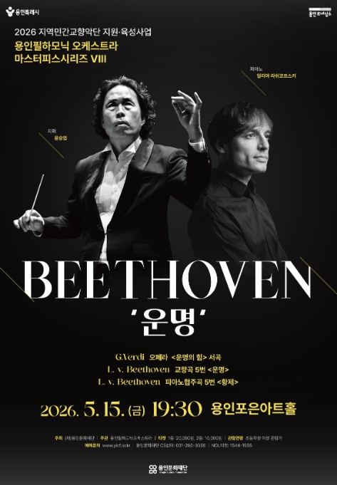 [세계로컬타임즈] 용인문화재단은 오는 5월 15일 오후 7시 30분 용인포은아트홀에서 ‘2026년 지역민간교향악단 지원·육성사업’의 첫 공연으로 용인필하모닉오케스트라의 기획공연 '마스터피스 시리즈 Ⅷ - 베토벤 ‘운명’'을 선보인다.