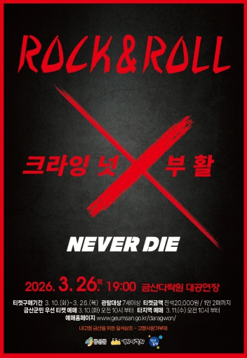 이번 공연은 2026년 금산다락원 기획 공연의 일환으로 마련됐으며 대한민국 록 음악을 대표하는 크라잉넛과 부활이 한 무대에 오르며 폭발적인 에너지와 깊이 있는 감성을 동시에 느낄 수 있게 꾸며진다.