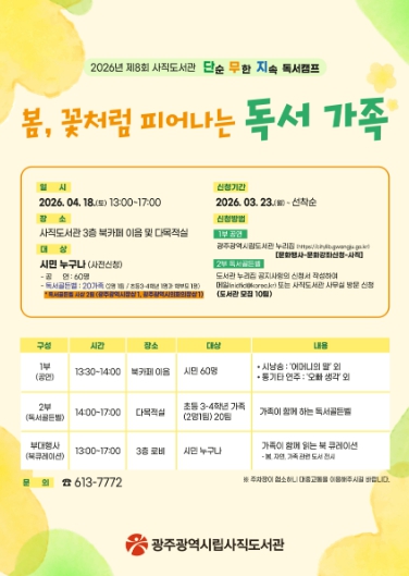 이 행사는 ‘봄, 꽃처럼 피어나는 독서 가족’을 주제로, 가족이 책을 통해 소통하며 독서의 즐거움을 나누고, 도서관 중심의 가족 독서 문화를 확산하기 위해 마련했다.