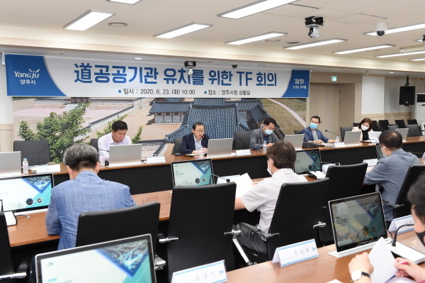 23일 양주시는 시청 상황실에서 부시장, 시의원, 민간전문가, 관계공무원 등 20여 명이 참석한 가운데 ‘도 산하 공공기관 유치를 위한 TF 1차 회의 및 타당성 연구용역 착수보고회’를 개최했다.