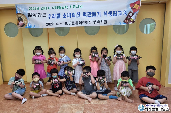 [세계로컬타임즈 조주연 기자] 전북 김제시가 “어린이집 및 유치원 영·유아와 시민 등 900여명을 대상으로 ‘우리쌀 소비촉진 떡만들기’와 ‘로컬푸드 소비촉진 식생활교육’ 등 김제시 식생활교육 지원사업을 추진했다”고 22일 밝혔다.