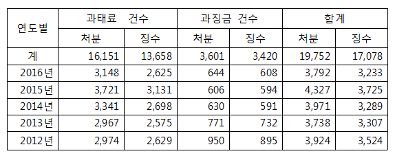 또 사업정지 등 과태료보다 무거운 과징금 부과는 3601건에 달했다.