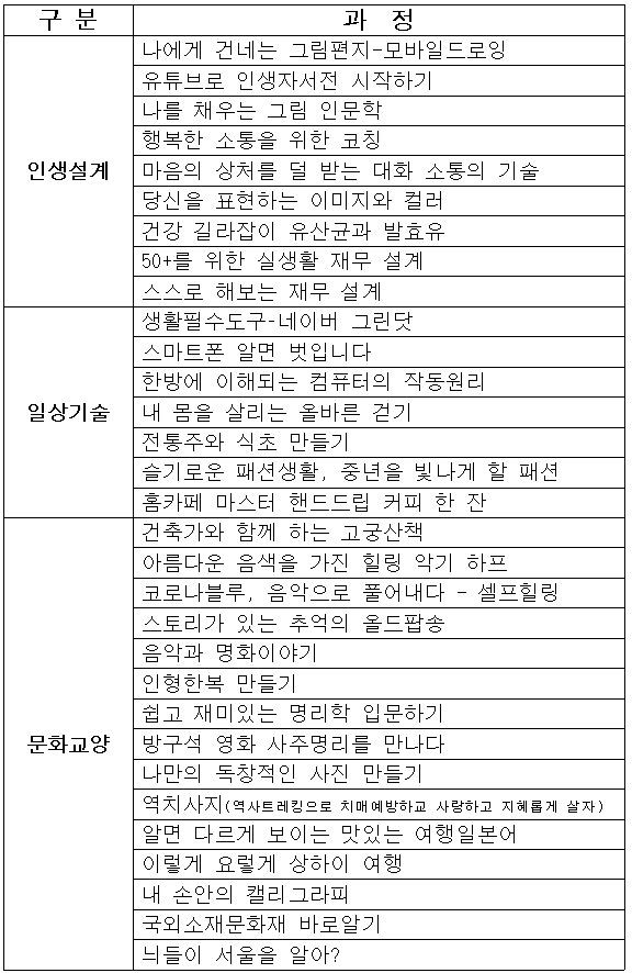 28일부터 서울시50플러스포털서 누구나 수강신청 가능