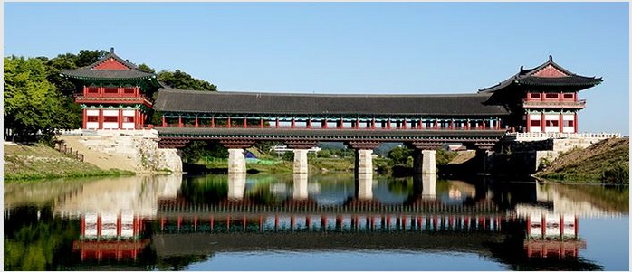 | ▲ 8개 핵심유적 중 첫 복원지인 ‘월정교’ 의 복원 완료 후 전경이다. (사진=경북도 제공) |