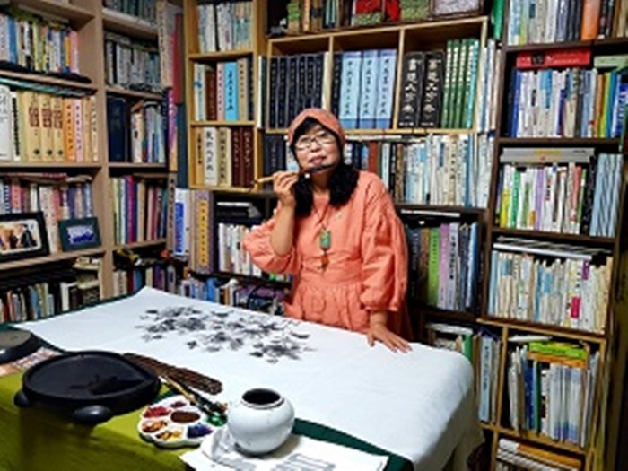 | ▲서예가이자 시‧수필가인 장숙자 작가가 서화를 하고 있다. |