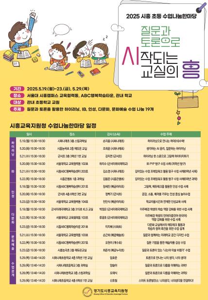 아울러 5월 29일 시화나래초등학교에서 진행되는 수업공개에서는 ‘토론’과 ‘질문’을 기반으로 한 실시간 수업공개가 이루어지며, 현장 교사들의 협의와 소통이 이어질 예정이다.