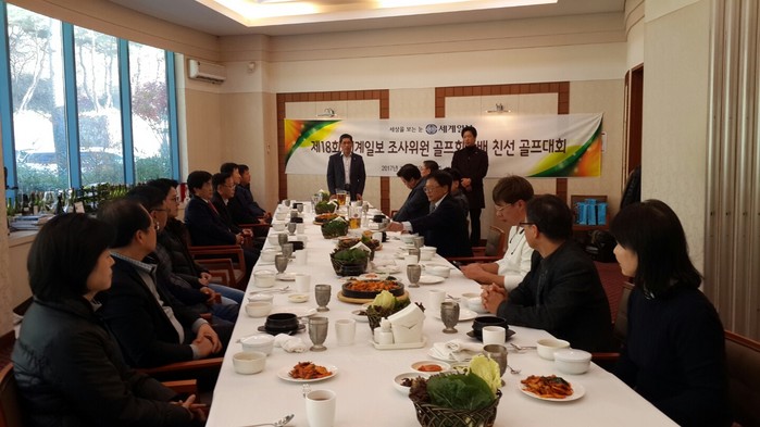 [세계로컬신문 이우춘 조사위원] 지난 16일 경기 파주시 서원밸리 컨츄리 클럽에서 열린 제18회 세계일보 조사위원 골프회장배 친선 골프대회의 시상식에서 최광배 회장이 인사말을 하고 있다.