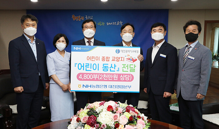 [세계로컬타임즈 민순혜 기자] 대전광역시교육청(교육감 설동호)은 지난 26일 NH농협은행 대전영업본부(본부장 김동수)로부터 2천만원 상당의 어린이 종합 교양지 ‘어린이동산’ 4,800부를 기탁받았다고 밝혔다.