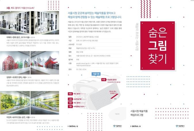 2월 3일~28일 매주 월·수요일 시청에 설치된 예술작품을 시민들이 쉽고 재미있게 감상할 수 있도록 서울시청 예술작품 투어 프로그램 ‘숨은그림찾기’를 운영한다.