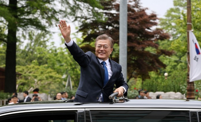 | ▲ 문재인 대통령이 지난 10일 오후 국회의사당에서 대통령 취임선서를 마치고 청와대로 향하며 거리에서 환호하는 시민들을 향해 손을 흔들고 있다.<사진제공=문화체육관광부> |
