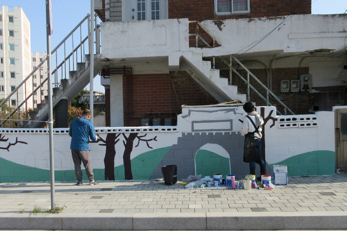 | ▲ 강화군 남산마을에서 주민들이 자체적으로 담장에 벽화를 그리고 있다. (사진=강화군 제공) |