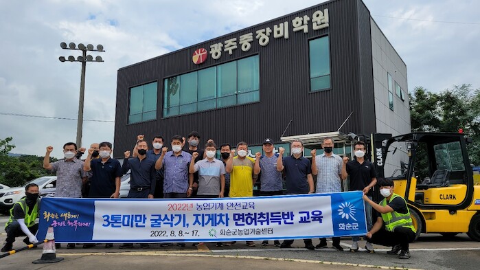 화순군은 농업기계 안전교육 사업의 하나로 면허 취득반 교육을 운영하고 있으며, 내년에는 굴삭기와 지게차 이외에 축산 농가 등에서 사용되는 농업용 로더까지 확대하는 방안을 검토하고 있다.