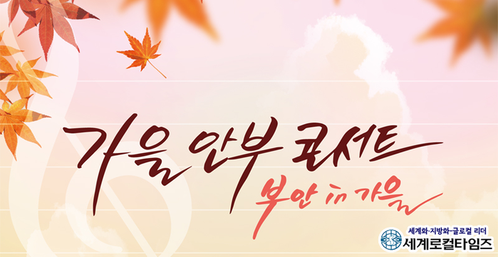 부안군 관계자는 “가을을 맞이해 모두의 안부를 묻는 형식의 스토리텔링이 있는 성악콘서트로 뮤지컬 오페라의 유령, 넬라판타지아, 그리고 신나는 라틴댄스 등이 선보인다”며 “코로나19 확산 방지를 위해 입장 시 발열 체크, 자가 문진표 작성, 좌석 띄어 앉기를 실시한다”고 말했다.