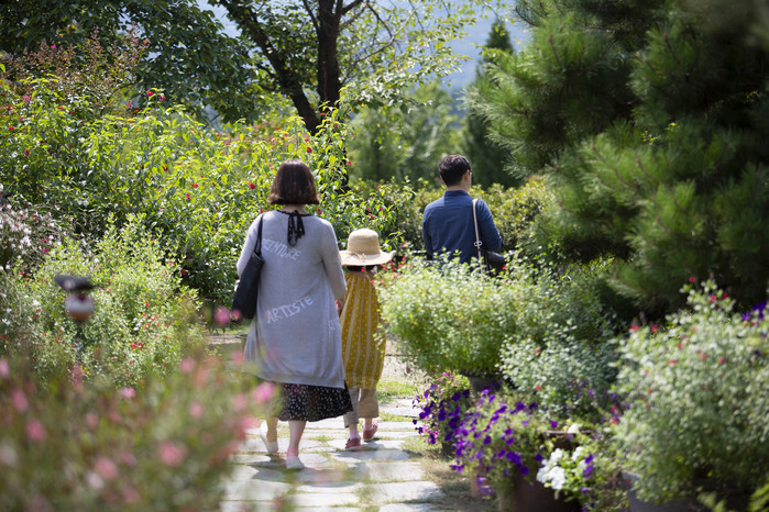 양평 들꽃수목원은 아이들과 놀기 좋은 곳이다. 특히 들꽃뮤지엄 아래 넓은 피크닉장에서는 탁 트인 남한강 풍경 속에서 신나게 뛰어놀 수 있다. 주변에 방갈로와 팔각정 등 쉴 수 있는 공간이 잘 구비 되어있고 시원한 나무그늘아래 평상에 돗자리를 펴고 피크닉을 즐기기에도 알맞은 곳이다. 곳곳에 고릴라와 판다 등 사실감 넘치는 동물조형물이 있고 작은 우리에는 공작새 가족이 살고 있다. 덕분에 동물원인 듯 수목원인 듯 신나게 뛰어 노는 아이들을 바라보는 엄마의 얼굴에 미소가 번진다. 오랜만에 도시생활에서 벗어나 자연 속 피크닉을 즐길 수 있어 좋은 곳이다. 독서와 가족을 테마로 조성된 재미있는 조형물을 찾아보고 기념사진을 찍는 재미도 쏠쏠하다.