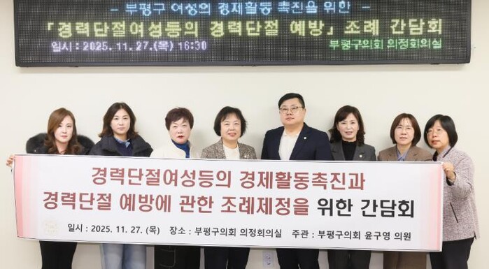 윤구영 의원은 “여성의 경제활동 참여는 개인의 문제해결을 넘어 부평구의 지속 가능한 성장과 경쟁력 강화에 필수적인 요건”이라며, “이번 간담회에서 제시된 소중한 의견들은 충분한 검토를 통해 조례에 담아 여성이 어려움 없이 경제활동에 참여할 수 있도록 최선을 다하겠다”고 밝혔다.
