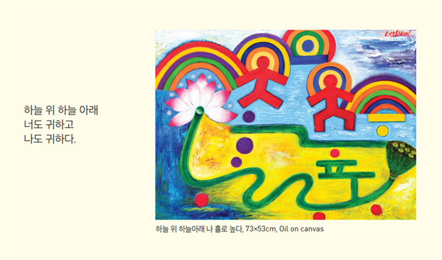 이어 “삶은 이미 온전하게 갖춰져 있는 것이기에 아니 삶 그 자체로 온전한 것이기에 본래 차고 넘침이 없는 것이기에 그렇다 할 수 있다”면서 “어쩌면 온전하다는 둥 기쁘다는 둥 즐겁다는 둥 등등 따위의 표현으로 갖다 댄다는 것도 군소리겠지만 어떻게 받아들이든 그건 각자의 몫이라 생각한다”고 말했다.