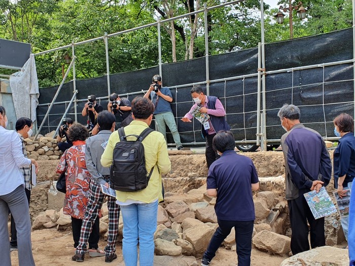| ▲ 경상감영 주변 발굴 현장 공개회를 진행하고 있다 .(사진=대구시 제공) |