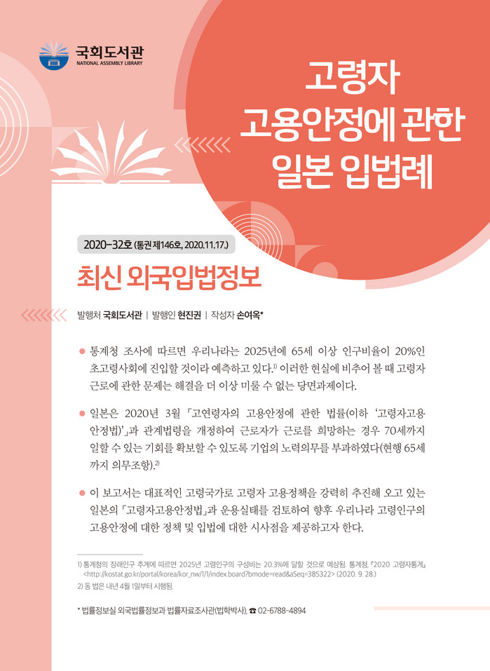 세계로컬타임즈 - 고령자 고용안정에 관한 일본 입법례 소개