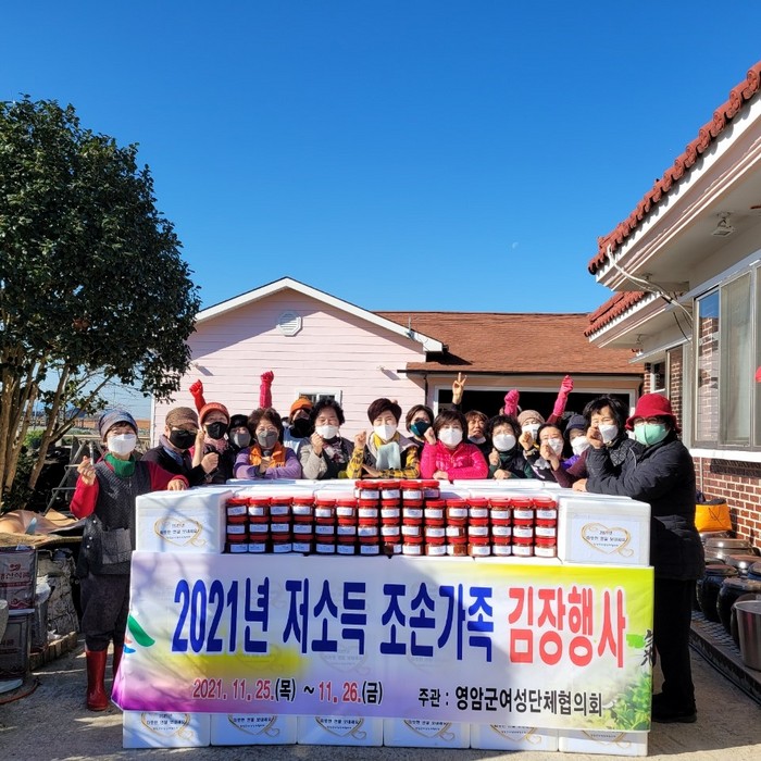 영암군여성단체협의회는 나눔문화 확산 및 더불어 살아가는 지역 공동체 구현을 위하여 소외계층을 대상으로 매년 김장김치를 직접 만들어 지속적으로 나눔을 실천하고 있다.