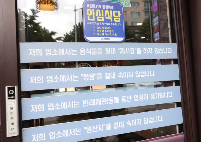| ▲ 안양시 한 식당에 '안심식당' 스티커가 부착돼 있다. (사진=안양시 제공) |
