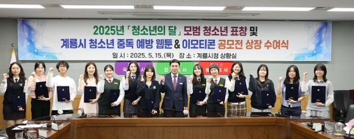 5월 청소년의 달을 맞아 열린 모범 청소년 표창은 지역 내 중·고등학교와 청소년 관련 기관으로부터 추천받은 청소년 6명과 계룡시 청소년상담센터 및 청소년별마루센터에서 청소년 보호 육성을 위해 노력한 유공자 2명을 표창 대상자로 선정했다.
