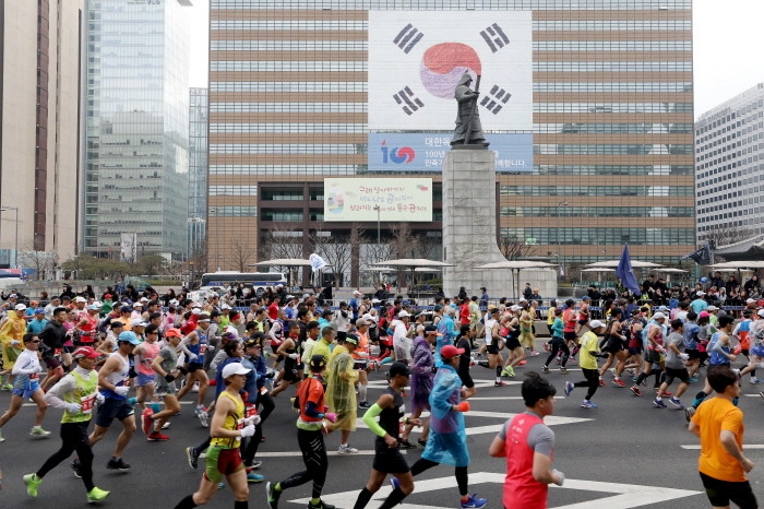 | ▲ 지난달 17일 광화문광장에서 열린 서울국제마라톤대회 참가자들이 출발하고 있다.(사진=뉴시스) |