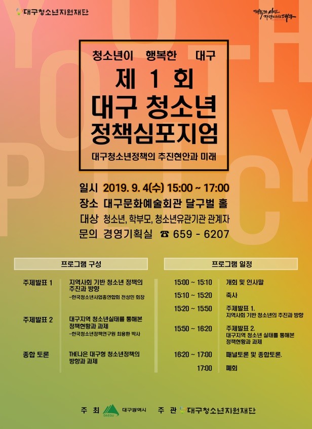 ▲ ‘제1회 대구청소년 정책심포지엄’ 홍보 포스터 (대구시 제공) |