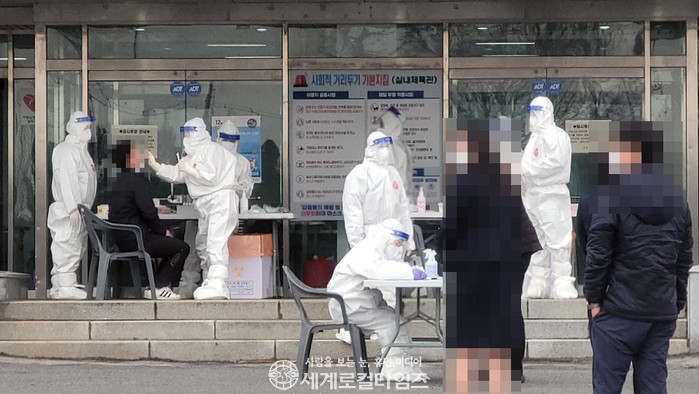 | ▲지난 26일 김제실내체육관에 임시선별진료소가 운영 중이다.(세계로컬타임즈 DB) |