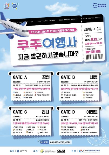 2025년 제12회 안양시학생동아리축제는 안양 시민이라면 누구나 참여할 수 있으며, 축제에 대한 자세한 정보는 만안청소년수련관 홈페이지에서 확인할 수 있다.