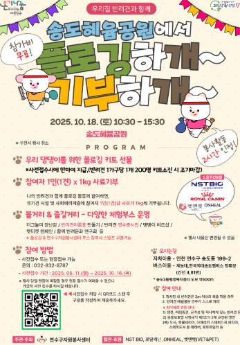 이번 행사는 ‘제1회 연수구 댕댕이 한마당’과 공동으로 개최하며 18일 10시 30분부터 15시 30분까지 다채로운 볼거리와 즐길 거리를 제공한다.