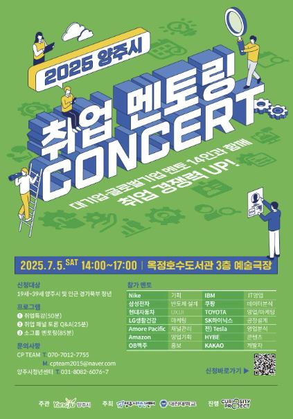 이번 콘서트는 양주시청년센터와 대진대학교 대학일자리플러스센터가 체결한 ‘지역청년 진로‧취업 활성화 업무협약’의 일환으로 추진되며, 경기 북부 청년 고용환경 개선을 위한 민·관 협력의 사례로도 주목된다.
