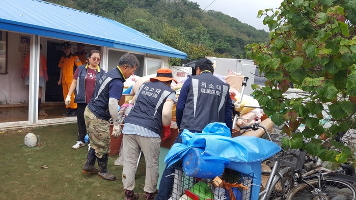 2일부터 경상북도 의용소방대 1,600여명이 투입됐고, 5~6일에도 500여 명이 태풍 피해 지역 복구활동에 여념이 없다.